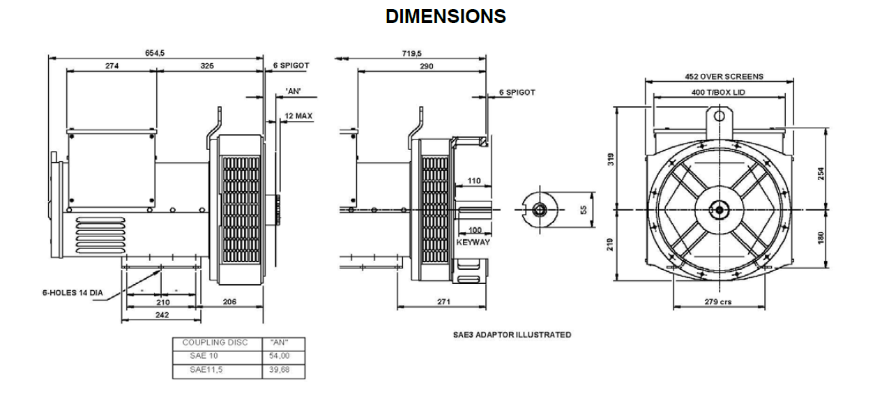 Stator WDG : 311 Excitation Volt : 55 Phase : 3